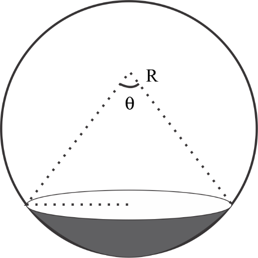 Consider a spherical drop of radius R. Surface tension of the liquid is S. Force of the surface tension on the shaded sub hemisphere due to remaining drop is $\dfrac{{S\pi R}}{2}$. The value of angle $\theta $ (angle subtended by the sub hemisphere at centre of drop) is