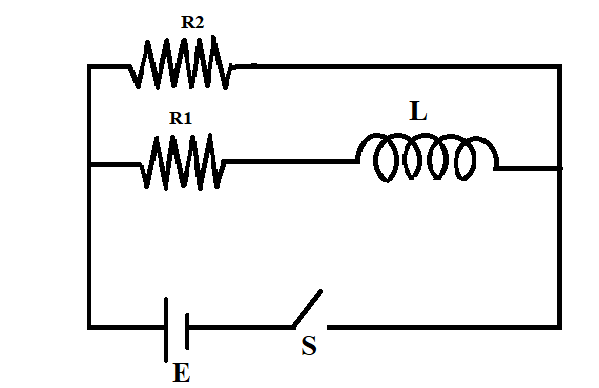 (A) The battery gets connected to the circuit when the switch is closed and current flows through the L-R circuit. After switching on the circuit for a long time, the current ‘i’ will become constant. Then current flowing through the circuit is given by,