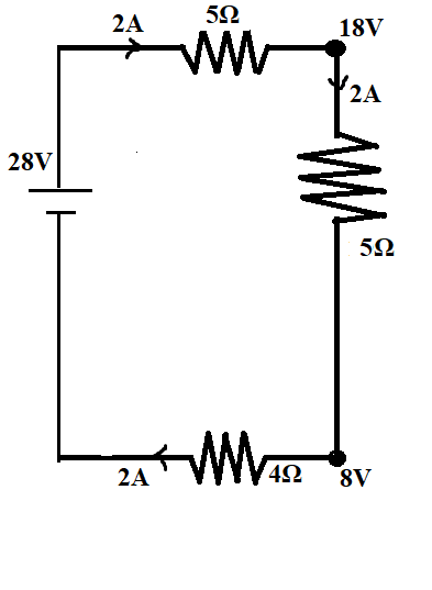The Potential difference is $28 V$(given in the question)