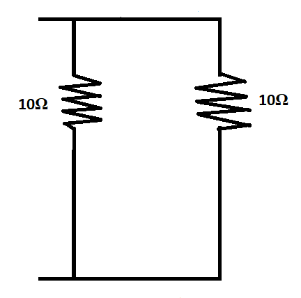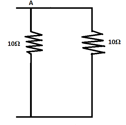 Effective resistance, $\dfrac{1}{R} = \dfrac{1}{{10}} + \dfrac{1}{{10}} = 0.2\Omega $
