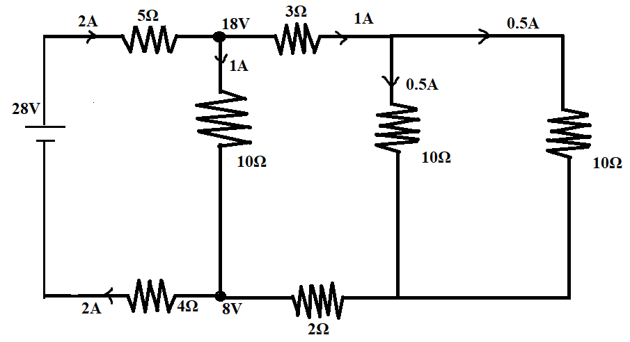 In the same way, the current through the next $3\Omega $ resistor can be calculated