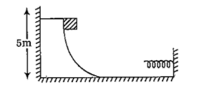 Consider the situation shown in the figure. A spring of spring constant \[400{\text{ }}Nm\]is attached at one end to a wedge fixed rigidly with the horizontal part. A \[40g\] mass is released from rest while situated at a height 5cm the curved track. The maximum deformation in the spring is nearly equal to (take \[g = 10m/{s^2}\]