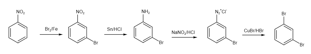 Image: Conversion of m-dinitrobenzene to dibromobenzene