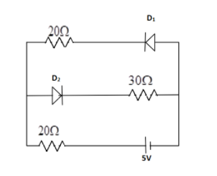 In this case the diode D1 is reverse biased and the diode D2 is forward biased. This implies that the top portion of the circuit will carry no current.