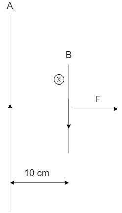 The force acting on the wire B due to the magnetic field by wire A is given by –