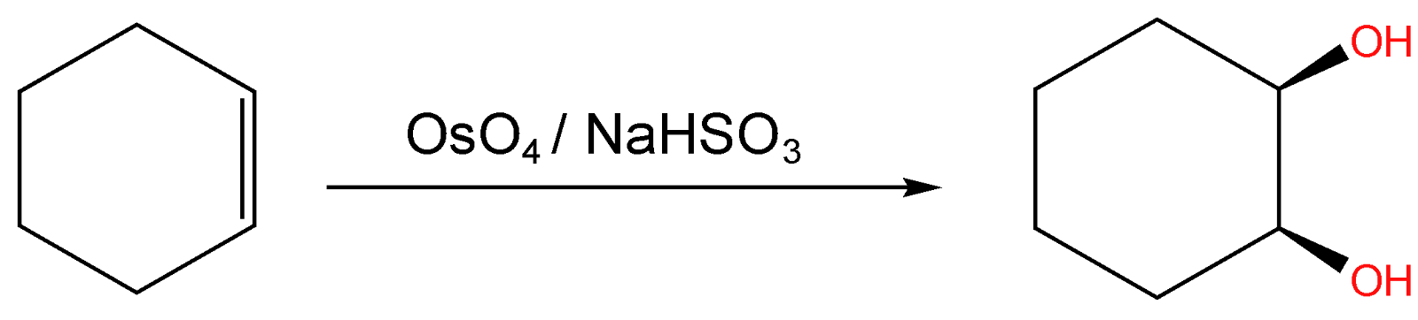 $C_6H_{10}\xrightarrow[]{OsO_4/NaHSO_3}C_6H_{10}\left ( OH \right )_2$