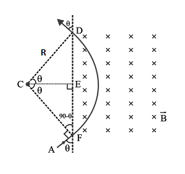 Note Students may get confused with the angle with which the particle enters the magnetic field. Students may presume it as$90^\circ $. We should take the angle as $\theta $ and proceed. Time spent can also be found by dividing the angle made by an arc with angular velocity.