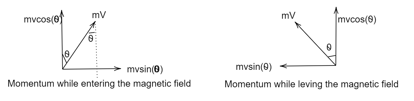 Momentum while entering the magnetic field is ${p_e} = mvcos\theta j + mv\sin \theta i$