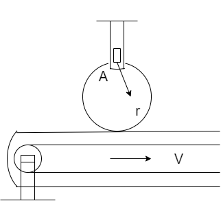 Disk A has a mass of $4kg$ and a radius $r = 75mm$, it is at rest, when it is placed in contact with the belt which moves at a constant speed $v = 18m/s$. Knowing that ${\mu _k} = 0.25$ between the disk and the belt, determine the number of revolutions executed by the disk before it reaches a constant angular velocity. (Assume that the normal reaction by the belt on the disc is equal to weight of the disc).