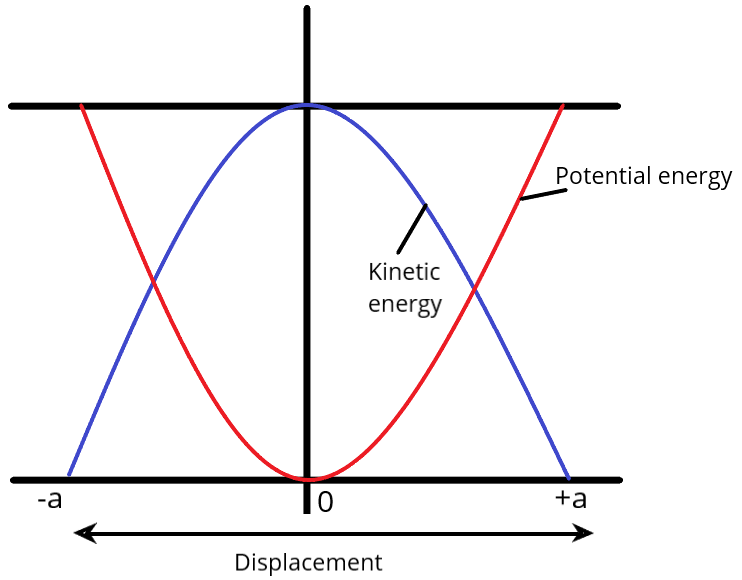 Thus, the displacement between positions of maximum potential energy and maximum kinetic energy is \[ \pm a\].