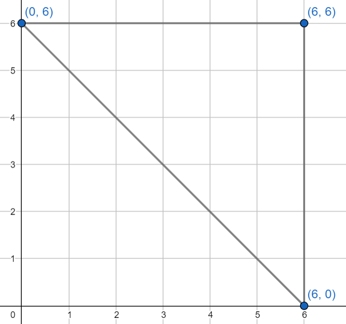 Hence, for a triangle with vertices (6,0), (0,6), and (6,6), the coordinates of its centroid are: