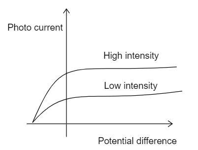 Hence the graph shows that the radiations of the same frequency but the different intensity may produce the different photocurrent from the metal. Hence the intensity of the radiation has the most influence in the production of the photocurrent.
