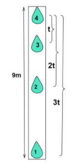 Note: It is given that the time taken by all drops to reach the ground is the same. But this does not imply that the distance covered by them in each second is also the same. Since the gravitational force causes the acceleration, the distance covered in each second is more than the previous second.