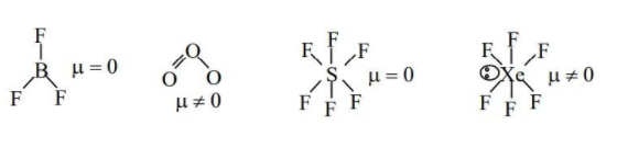 - The net dipole moment of the molecules$B{{F}_{3}}$ and $S{{F}_{6}}$ is zero and hence they do not possess permanent dipole moments. Hence option (B) is incorrect.