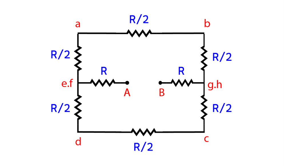 The three $\dfrac{R}{2}$in the above and below of AB are in series. Both of them will be $\dfrac{{3R}}{2}$. The circuit diagram will be