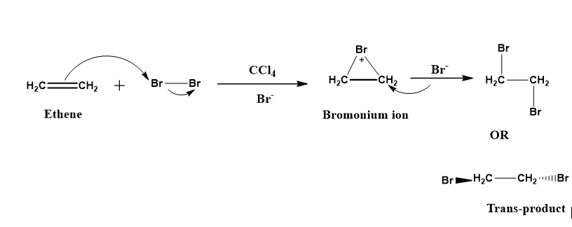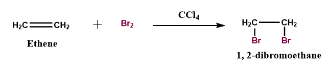 When the unsaturated hydrocarbon like ethene is treated with bromine and chlorine in the presence of a non-nucleophilic solvent such as \[CC{l_4}\]this led to the isolation of vicinal dibromo or dichloroalkene respectively.