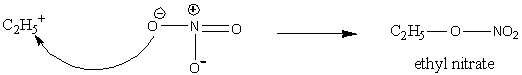 Therefore, the product formed in the reaction of ethyl iodide and silver nitrate is ethyl nitrate, \[{{\rm{C}}_{\rm{2}}}{{\rm{H}}_{\rm{5}}}{\rm{O}} - {\rm{N}}{{\rm{O}}_{\rm{2}}}\].