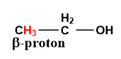 In a dehydration reaction, a water molecule is generated by the removal of a beta-hydrogen atom and hydroxyl group (\[ - OH\]).