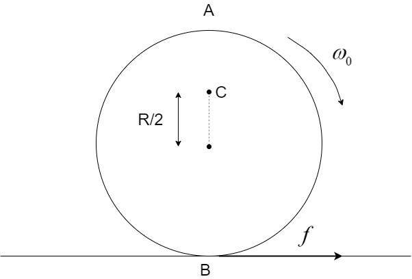 Hint: From Newton’s law we know that without any external force a rest body will always remain at rest. Using this law, we can identify the force of friction acting on the disc during its rolling motion. The direction has to be computed by the fact that, at B, there shall be no relative velocity with respect to the ground.