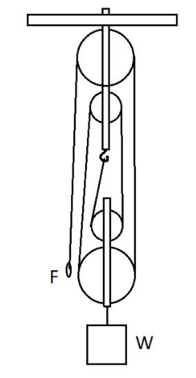 Fig, shows a block and tackle system pulleys used to lift a load. What is the mechanical advantage of the system?