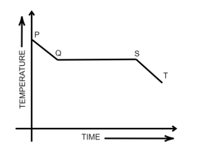 From Q to S the phase transforms from liquid to solid, known as “freezing”. The wax exists in both solid and liquid states. Here the slope of temperature versus time graph is zero.