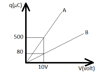 Note Whenever these types of questions appear, first thoroughly examine the graph. From the graph it can be easily determined that the slope of the graph gives capacitance as X and Y-axis represent voltage and charge respectively. Then determine the capacitance for series and parallel combination separately.