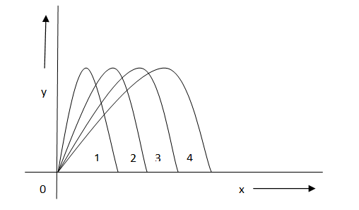 In the figure of the question, the fourth path of the kicked football has the maximum range, thus the fourth path of the football has the highest component of the horizontal velocity, then third, second and first.
