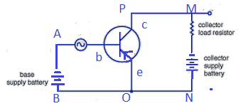 ii) Input voltage is applied at the AB terminal of the emitter base junction and the output voltage is produced at MN terminal across the load resistor with an amplified signal.