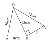 We know that DB = 12 cm, DC = 13 cm. SO, we will assume BC = x. SO, we will then get,