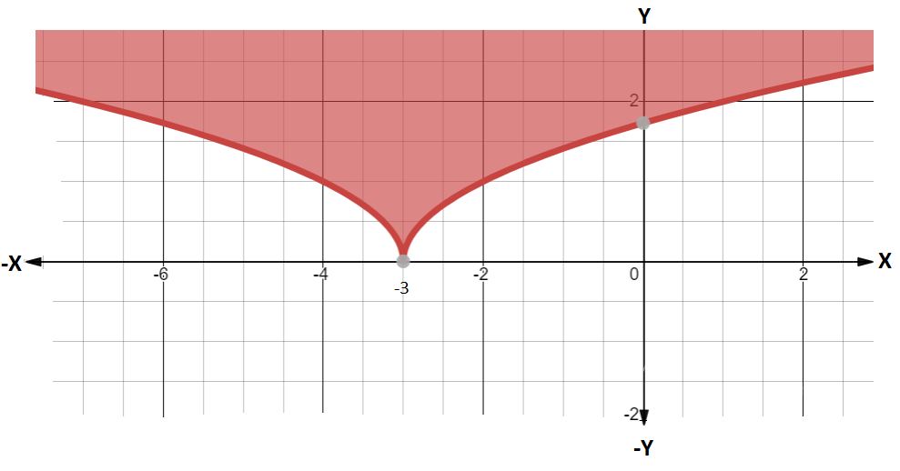 Thus, for $x \geqslant - 3$ the curve will be a parabola that opens towards the direction of the positive x-axis and for $x \leqslant - 3$ the curve will be a parabola that opens towards the negative x-axis. This is because of the sign of the variable $x$ in the equation.