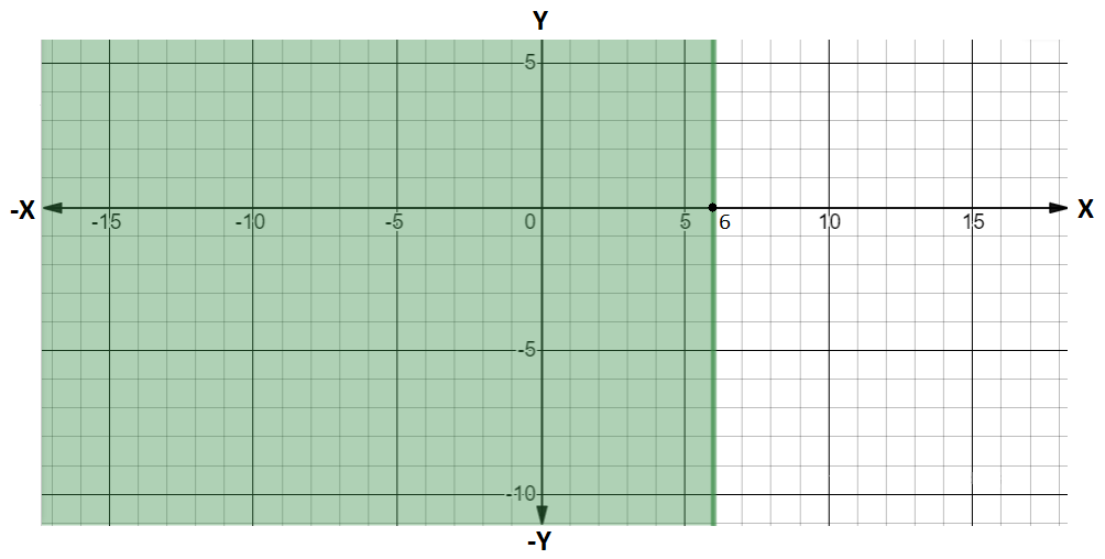 And the line $x \leqslant 6$ will be vertical and pass parallel to the y-axis through point $\left( {6,0} \right)$.