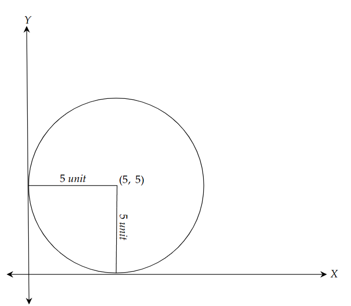 $ \Rightarrow {\left( {x - 5} \right)^2} + {\left( {y - 5} \right)^2} = {5^2}$
