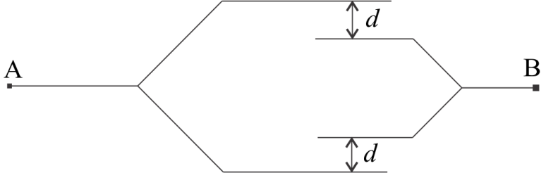 Consider the metallic plates $1,2$ and $3$ each of surface Area A, and are placed at a distance ‘d’ apart from each other and the two plates outer plates are connected each other as shown in the figure. Then the arrangement of Conductors behaves as a parallel Combination of two sub Capacitors has plate Area ‘A’ and the separation ‘d’. The Capacitance of the arrangement arrangement of the of the conductors is given by