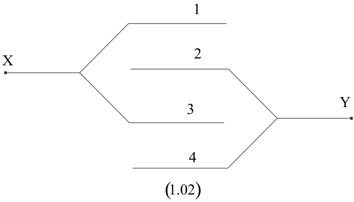 Now in the above figure we have four metallic plates $1,2,3$ and $4$,each surface area ‘A’ and are placed at a distance ‘d’ apart from each other and two alternative plates $\left( {2,4} \right)$ and the plates $\left( {1,3} \right)$ are connected to each other separately as shown in the figure $\left( {1.02} \right)$ . Then this arrangement shows the parallel Combination of three sub capacitors.