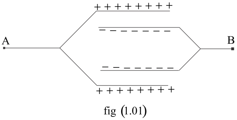Suppose that the point A is connected to the positive terminal and B is connected to the negative terminal of the Battery.