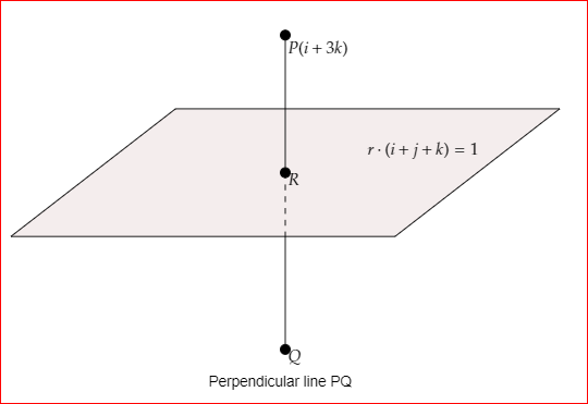 Since \[PQ\] is perpendicular to the plane \[r \cdot \left( {i + j + k} \right) = 1\], the direction ratios of \[PQ\] are \[i + j + k\].