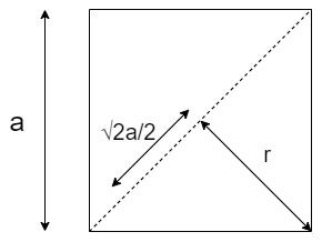 $\therefore $ moment of inertia of square plate = $\dfrac{1}{6}\dfrac{M}{2}{r^2}$ = $\dfrac{1}{6}\dfrac{M}{2}{\left( {\dfrac{a}{{\sqrt 2 }}} \right)^2}$ = $\dfrac{{M{a^2}}}{{24}}$--equation($4$)