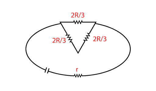 Where ${R_E}$ = equivalent resistant and r = internal resistance.