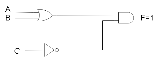 $F = \left( {A + B} \right).\bar C$