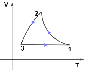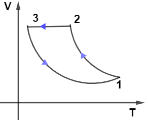 Now, on observing the path $1 \rightarrow 3$ from the PV diagram we see that it’s kept at the constant volume it means in the VT diagram path $1 \rightarrow 3$ must be kept at a constant volume so from options only (B) and (D have this condition.