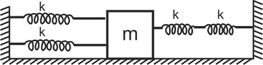 Four massless springs each of force constant \[k\] are attached to a mass $m$kept on a smooth plane as shown in figure. If the mass is displaced in the horizontal direction and released, its frequency of oscillation is: