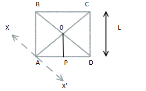 First, we will draw the diagram. Here, OP is the perpendicular drawn from O to AD. XX’ is drawn passing through A and parallel to BD. The length of AP and AD to be equal as $\dfrac{L}{2}$.