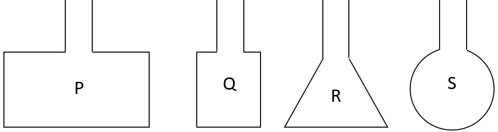 Four wires, each of length 2 m, are bent into four loops P, Q, R and S and then suspended in uniform magnetic field. If the same current is passed in each, then in which loop will the torque be maximum?