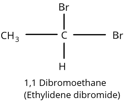 \[1,1\] Dibromoethane is another name for Gem-ethyl dibromide. It has a \[1,1\] connection because it has two bromine atoms on a single carbon atom. It is hence geminal dihalide.
