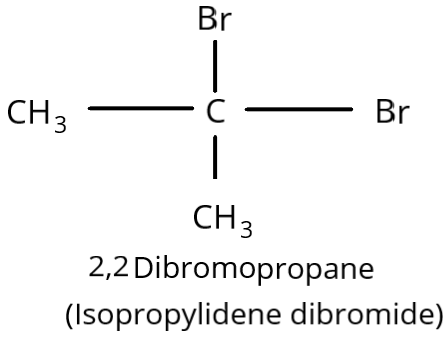\[2,2\] Dibromopropane(\[C{H_3}CB{r_2}C{H_3}\]) is another name for isopropylidene dibromide. It has a \[2,2\] connection because it has two bromine atoms on the same carbon atom. It is hence geminal dihalide.