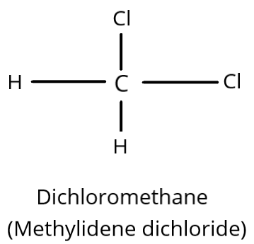 Dichloromethane is another name for methylidene dichloride. It has a connection because it has two Cl-atoms attached to the same carbon atom. It is hence geminal dihalide.