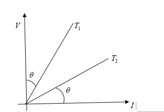 graph \[V - I\] of a conductor at two different temperatures is shown in fig. the ratio of temperature $\dfrac{{{T_1}}}{{{T_2}}}$ is:
