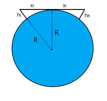 \[S = {x_t} + {x_r} = \sqrt {2{h_t}R} + \sqrt {2{h_R}R} \]