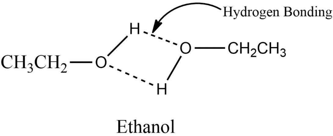 Lastly, in option C ethanol, it has strong hydrogen bonding due to the presence of a strongly polar bond in the –OH group. Ethanol contains a hydrogen atom and it is bonded to a highly electronegative oxygen atom. The structure is given below.