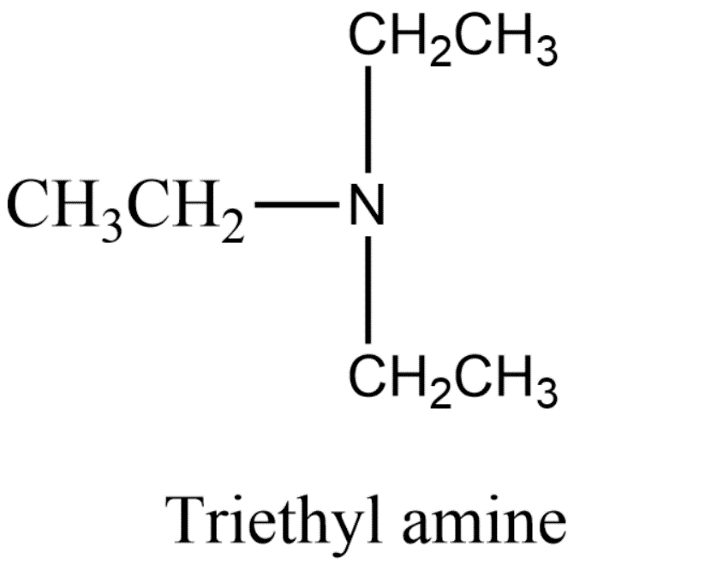 Now in option b) triethylamine does not have hydrogen bonding because there is no hydrogen which is attached to electronegative nitrogen. There are three ethyl groups which are attached to the Nitrogen. The structure is given below.